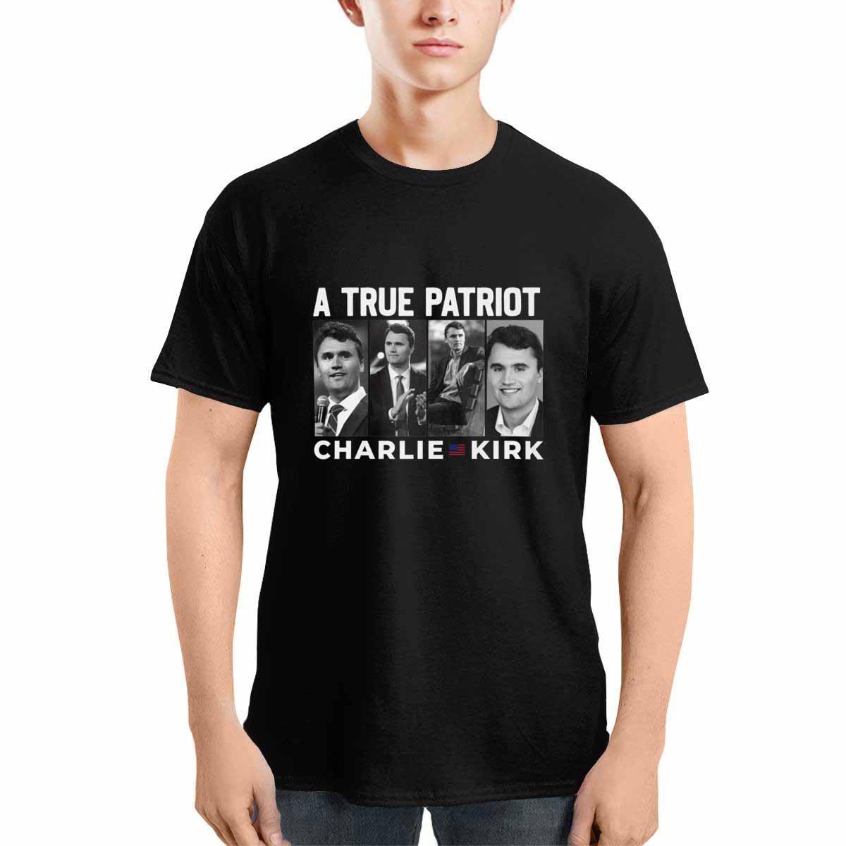 Crafted from cotton, the Charlie Kirk Tribute Shirt offers a comfortable, breathable fit perfect for daily wear. The black fabric provides a sleek, versatile base, while the bold, vintage-inspired images of Charlie Kirk across different poses convey a message of patriotism and leadership. Each design detail is printed with precision, ensuring durability that will last wash after wash.