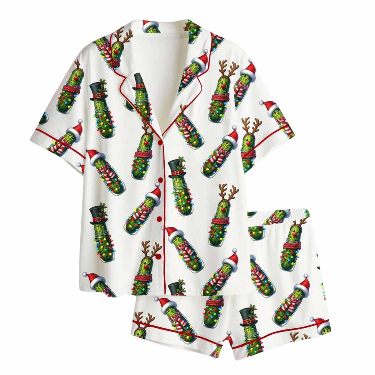 This year, the holiday season is all about combining playful traditions with a touch of everyday luxury. Enter the Christmas Pickle Holiday Cucumber Satin Pajama Set—your new go-to for creating fun memories and Insta-worthy moments, all while wrapped in silky comfort. This isn’t just sleepwear; it’s a whole festive vibe.