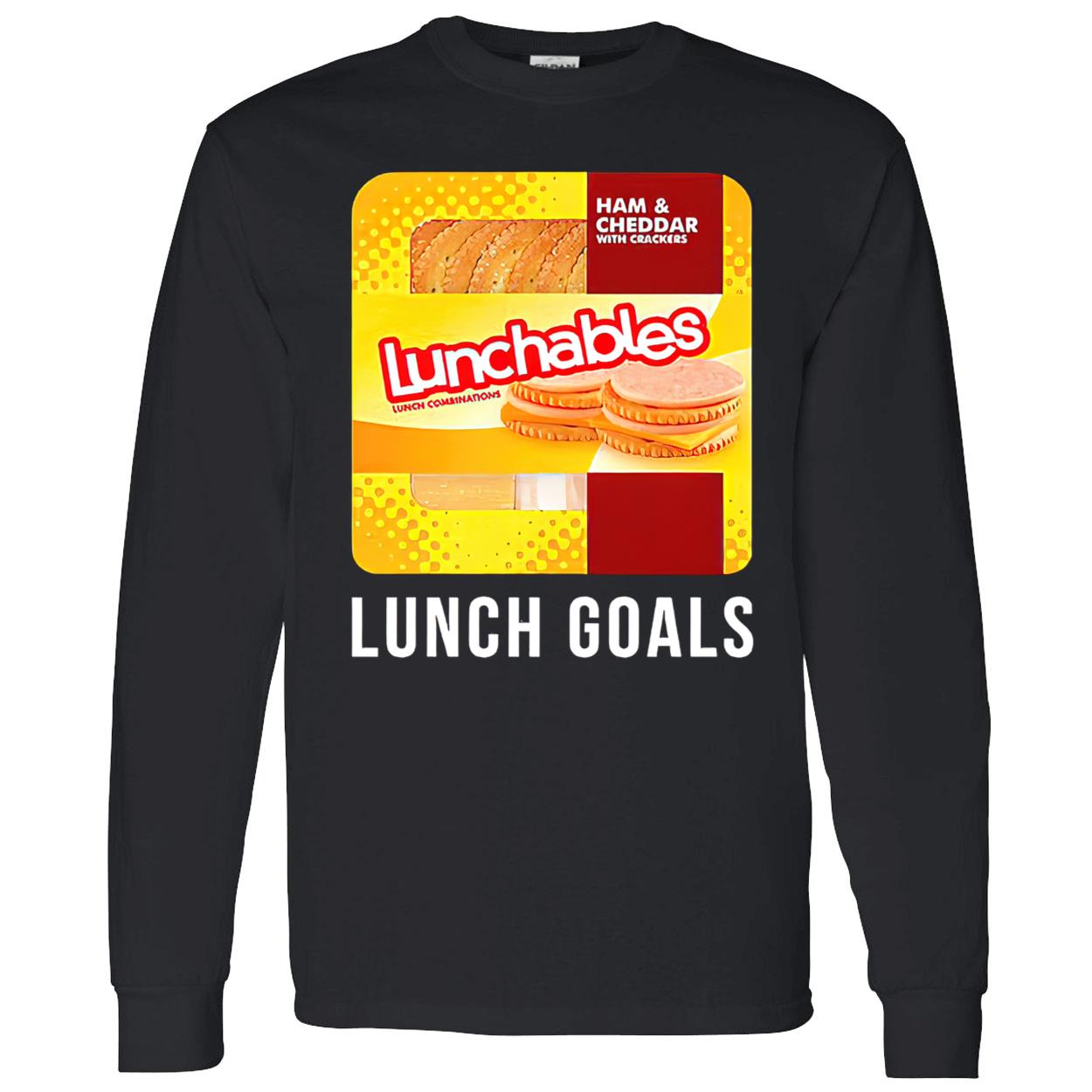 Ham and cheddar Lunchables lunch goals shirt, Hoodie, Long Sleeve, Crewneck Sweatshirt, Jersey V-neck, Women’s T-shirt, Ladies Boyfriend T-shirt for Women, Unisex tank top, Women’s Racerback Tank, Baseball Tri-Blend Raglan…All available. You’re a trendsetter who’s setting the lunch scene with a Ham and cheddar Lunchables lunch goals shirt. Show your love for this classic sandwich with this awesome T-shirt.