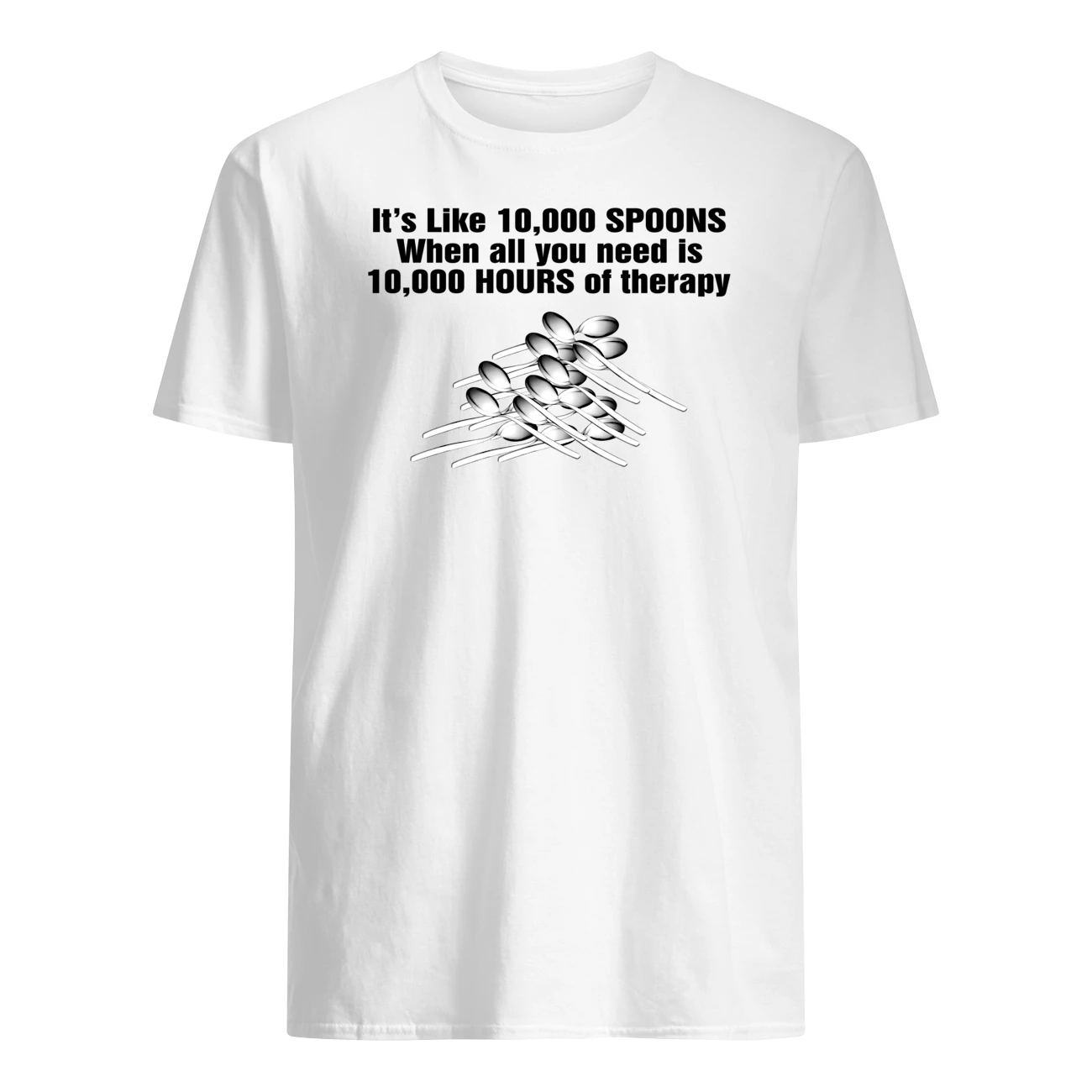It’s like 10000 spoons when all you need is 10000 hours of therapy shirt, Hoodie, Long Sleeve, Crewneck Sweatshirt, Jersey V-neck, Women’s T-shirt, Ladies Boyfriend T-shirt for Women, Unisex tank top, Women’s Racerback Tank, Baseball Tri-Blend Raglan…All available.