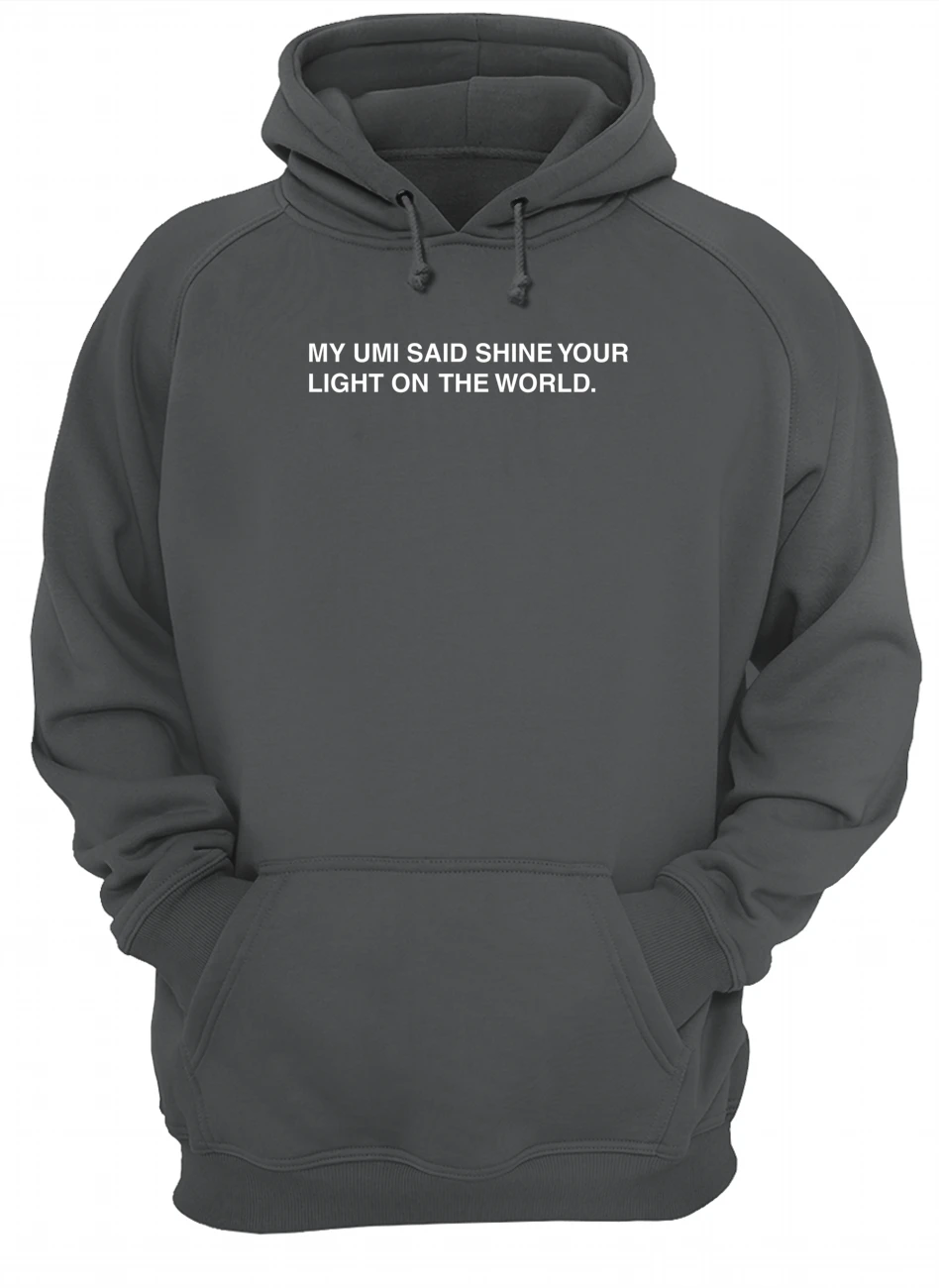 My umi said shine your light on the world shirt, Hoodie, Long Sleeve, Crewneck Sweatshirt, Jersey V-neck, Women’s T-shirt, Ladies Boyfriend T-shirt for Women, Unisex tank top, Women’s Racerback Tank, Baseball Tri-Blend Raglan…All available.