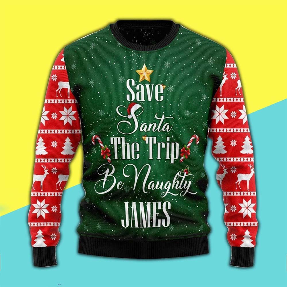Save Santa The Trip Be Naughty James Christmas sweater, Hoodie…All available.